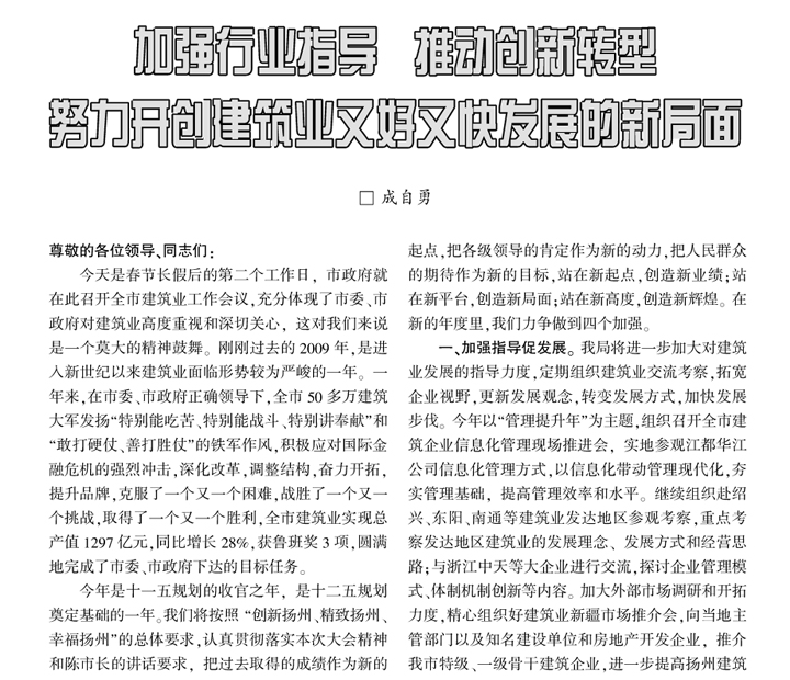 转型升级 创新发展 加快建设更高水平的建筑强市